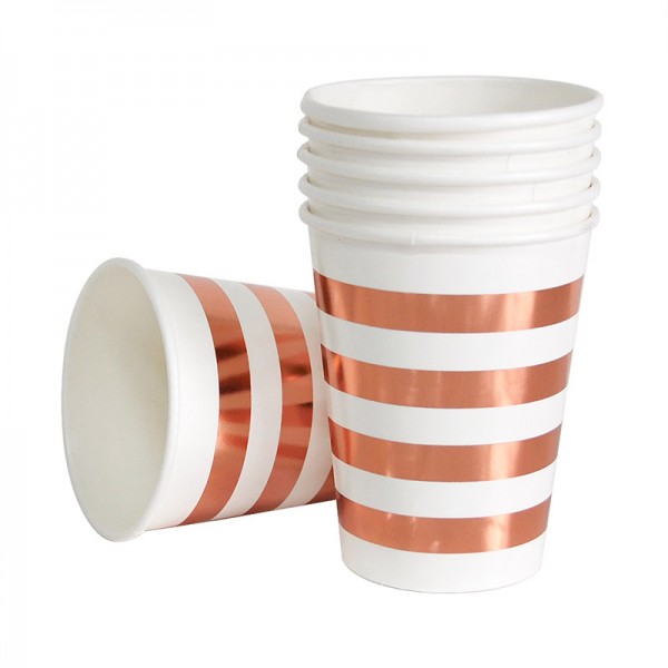 파티컵 8온스 줄무늬 로즈골드 6입