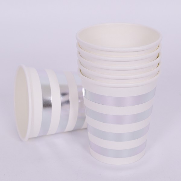 파티컵 8온스 줄무늬 실버 6입