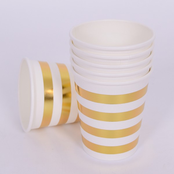 파티컵 8온스 줄무늬 골드 6입